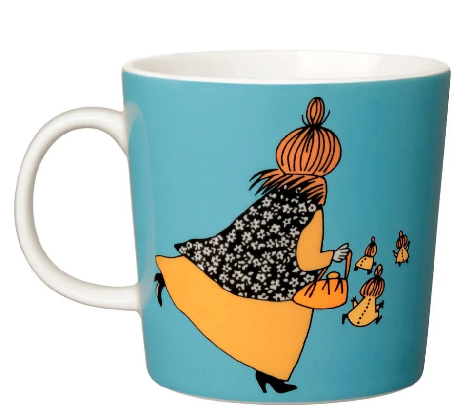 | Muumien 75-vuotisjuhlavuoden kunniaksi Arabia toi myyntiin erikoiserän juhlavuoden leimalla varustettuja klassikkomukeja. Leima on kullanvärinen, siinä lukee Moomin 75 ja sitä kuvittavat lämpimästi toisiaan halaavat Muumipappa, Muumimamma ja Muumipeikko. |