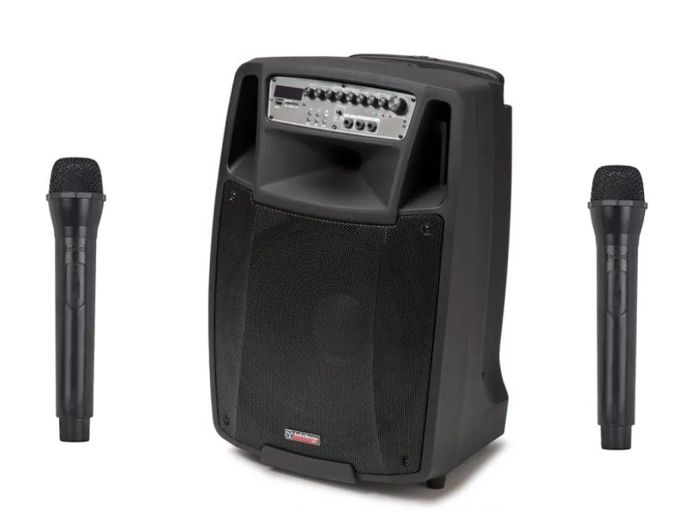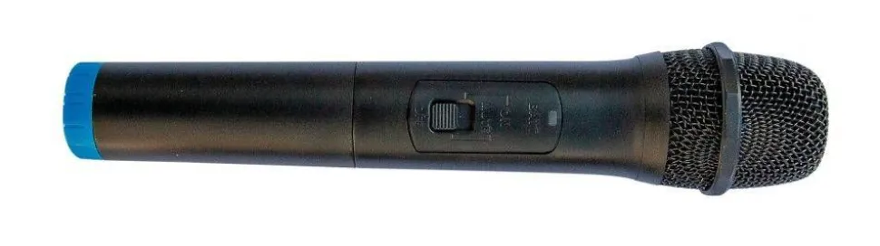 | Kaksi langatonta käsimikrofonia lupavapailla, ilmaisilla taajuuksilla |