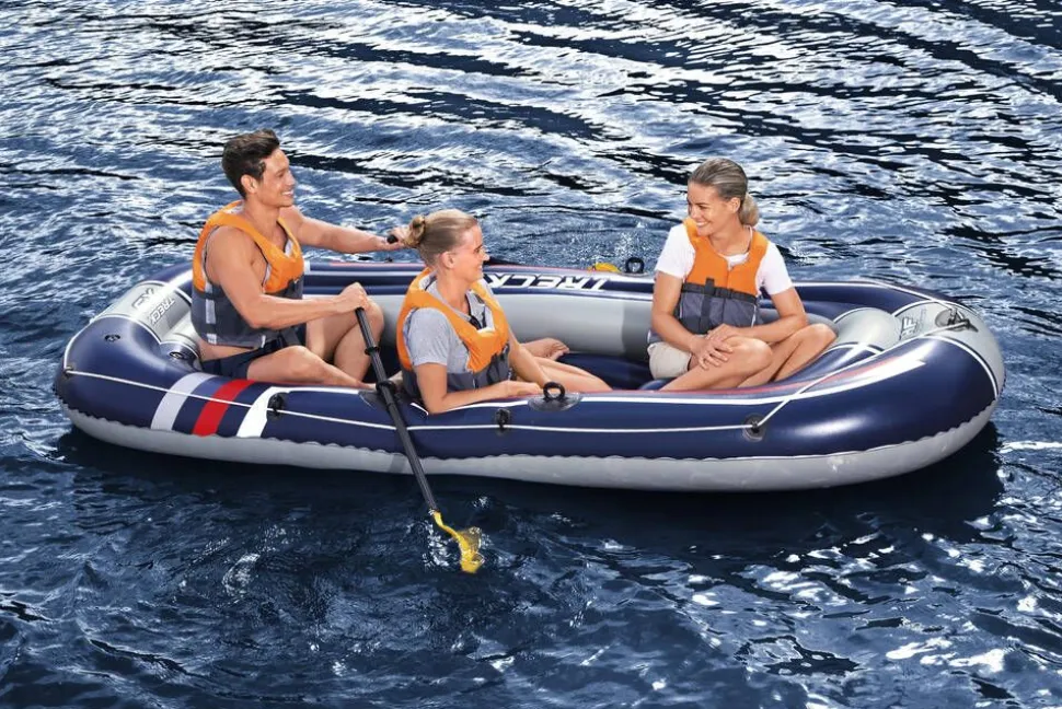 | Setin sisältö: vene, airopari, jalkapumppu, korjauspaikka |