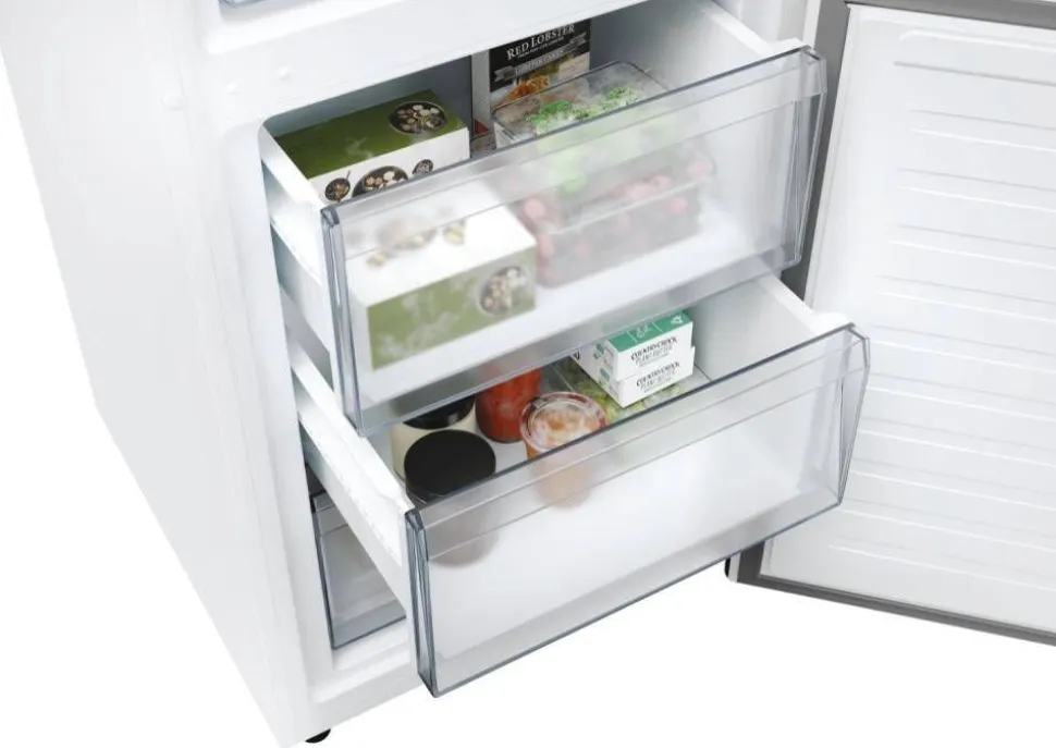 | Day Light -valaistus valaisukehyksellä tuo pehmeän valon kaapin joka nurkkaan, helpottaen tuotteiden löytämistä myös täydessä jääkaapissa. |