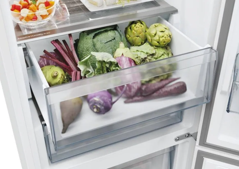 | Humidity Zone -vihanneslaatikko säilyttää automaattisesti ihanteellisen kosteustason, kiitos Natura Fiber -materiaalin – näin vihannekset ja hedelmät säilyvät pidempään tuoreina. |