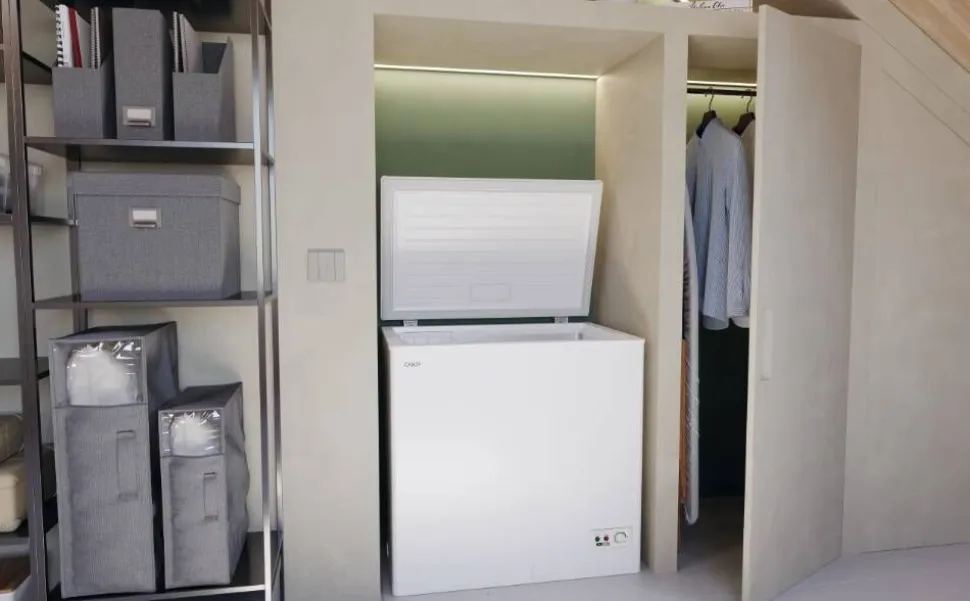 | Uuden energiamerkintäasetuksen mukaisesti tämä pakastin kuuluu energialuokkaan E. Verrattuna luokkaan F se vähentää kulutusta jopa 20 %, säästäen energiaa ja rahaa sekä kunnioittaen ympäristöä. |
