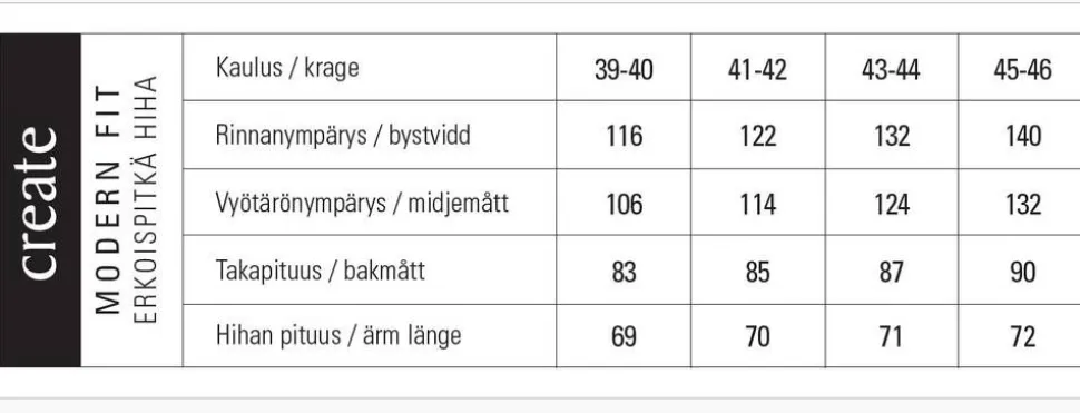 | Istuvuus:Modern fit |