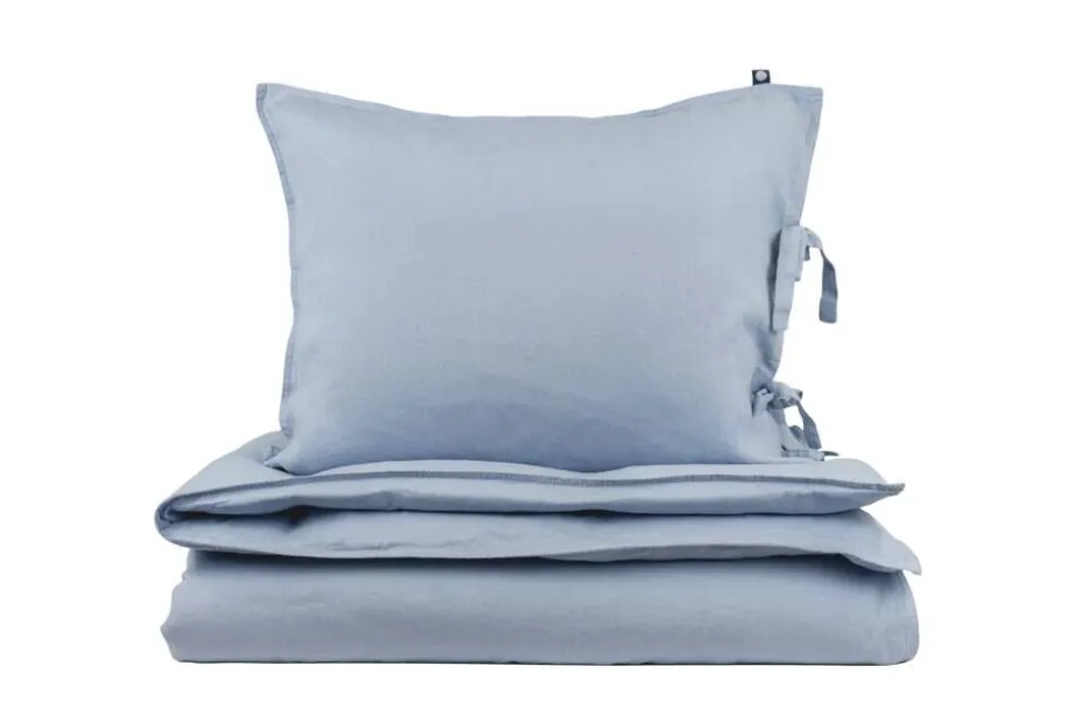 | Hienosti viimeistellyissä pussilakanoissa ja tyynyliinoissa on kaksoistikkaukset ja tyynyliinan reunassa solmittavat nauhat |