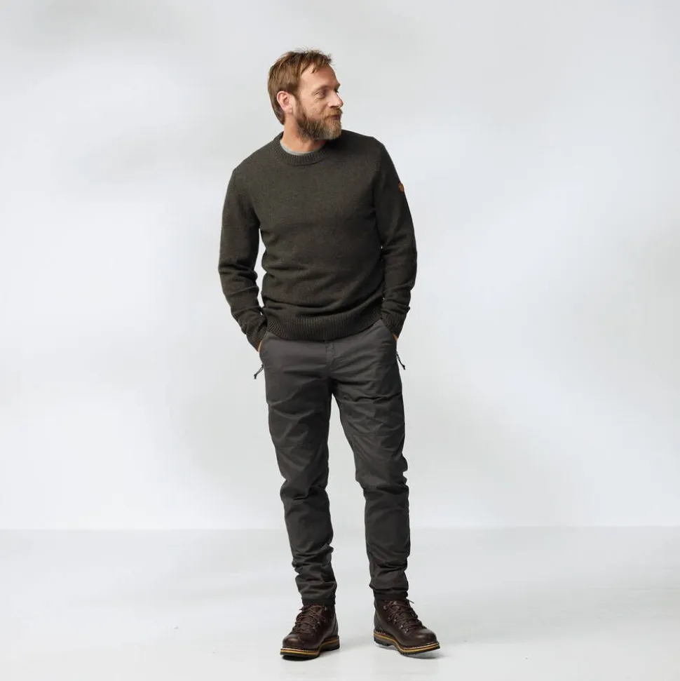 | Luomupuuvilla, Kierrätetty polyesteri, Jäljitettävissä villa, Sertifioitu eläinkuitu, Valmistettu ilman PFAS-yhdisteitä |