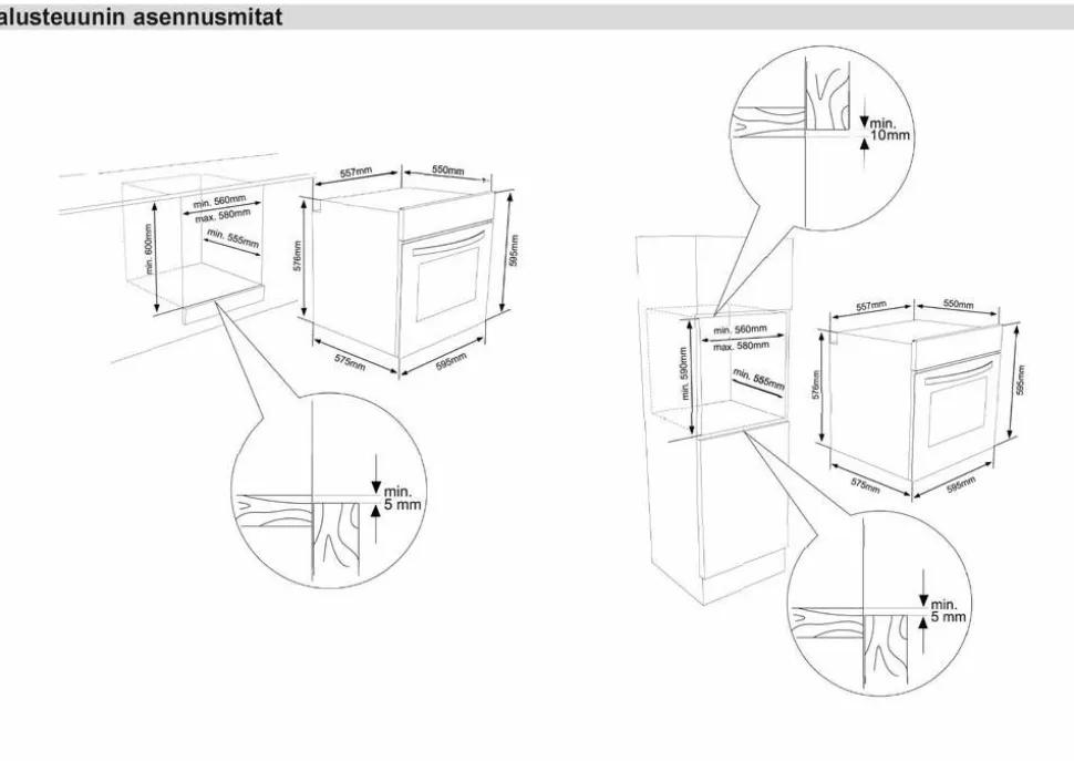 | Asennus työtason alle tai kaapistoon |