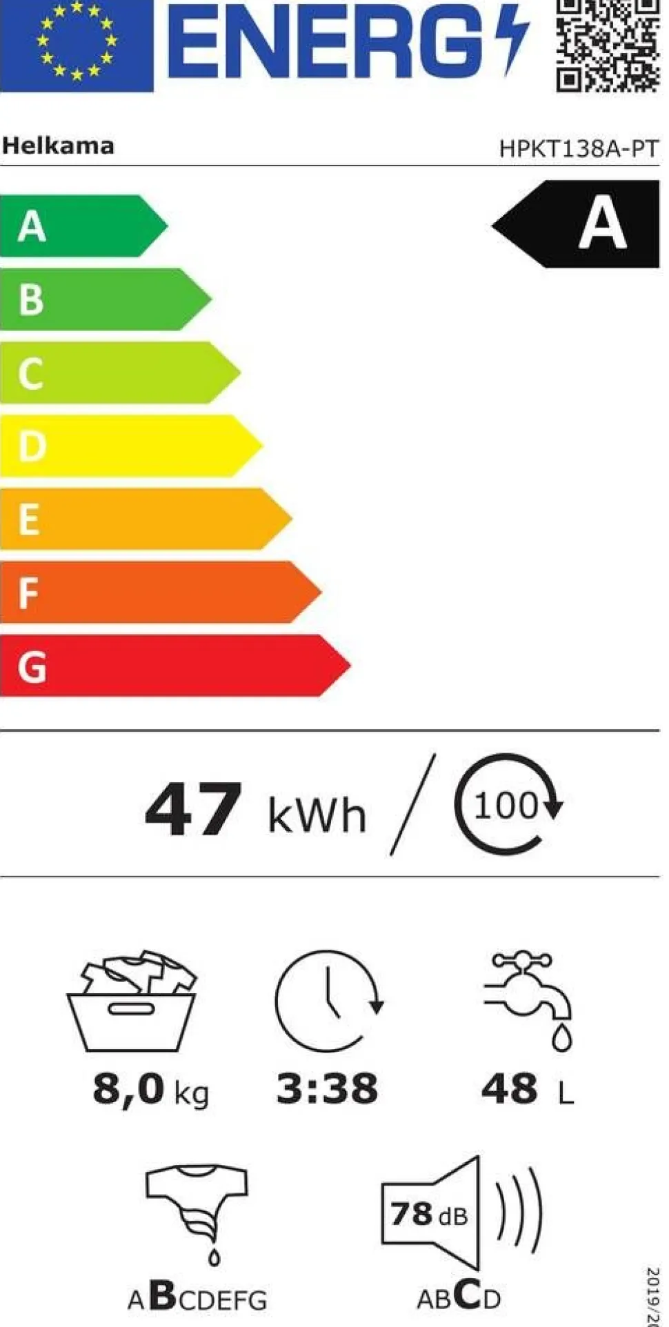 | Tuotteen energiatehokkuusluokka:A |
