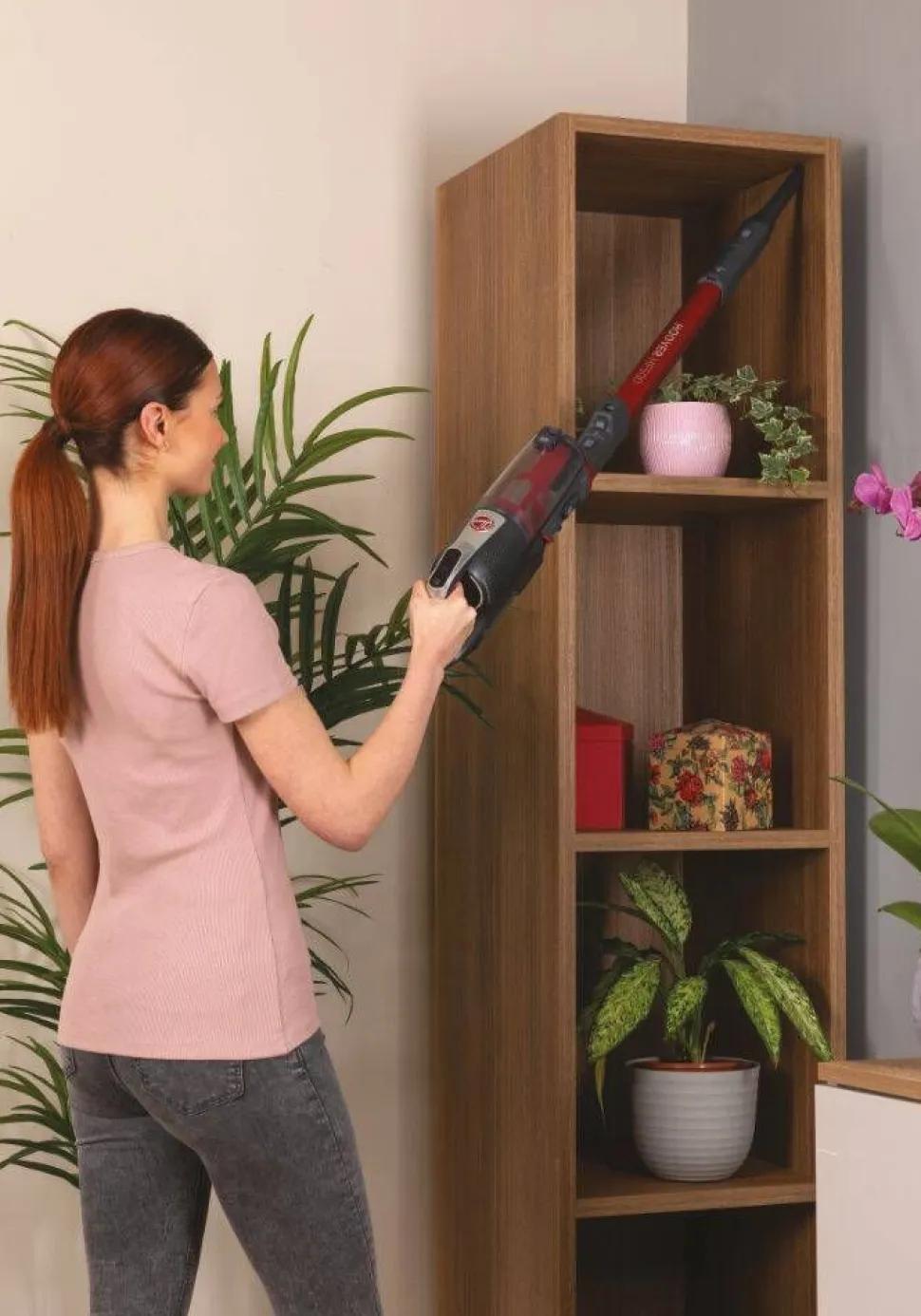 | KORKEUS 69 CM Ei tilaa? Se ei ole ongelma. HF500 varsi-imuri on säilytystilassa vain 69 cm korkea, joten se voidaan säilyttää yhtä hyvin pienessä tilassa kuin kaapissakin. |
