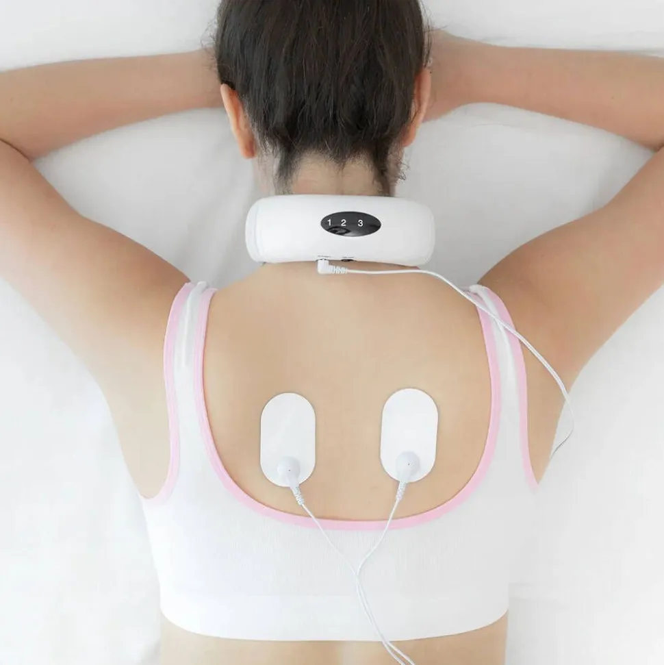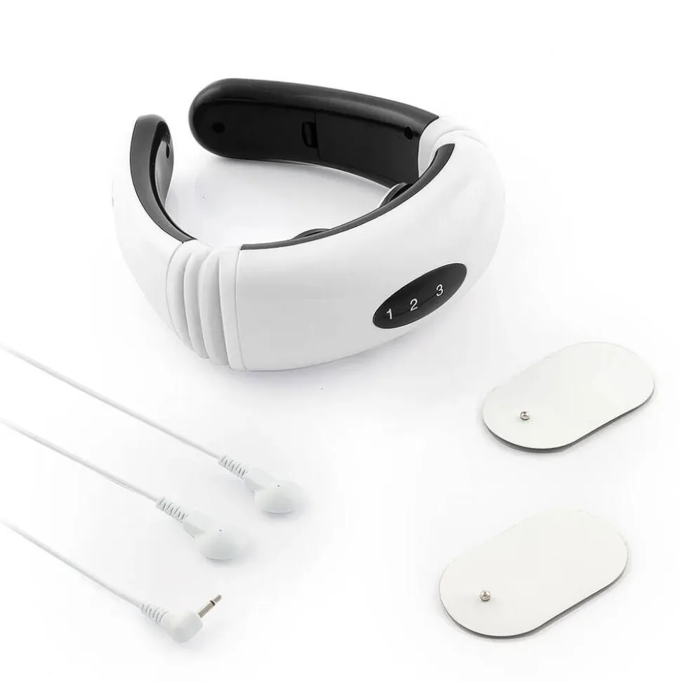 | Yhden myyntipakkauksen sisältö:Sähkömagneettinen niska- ja selkähierontalaite. 2 elektrodia hartioiden ja selän hierontaan. 2 kiinnityslaastaria elektrodeille. Käyttöohjeet 24 eri kielellä, mukaan lukien suomi. Huom: Laite toimii 2 x AAA-paristolla (eivät sisälly pakkaukseen) |