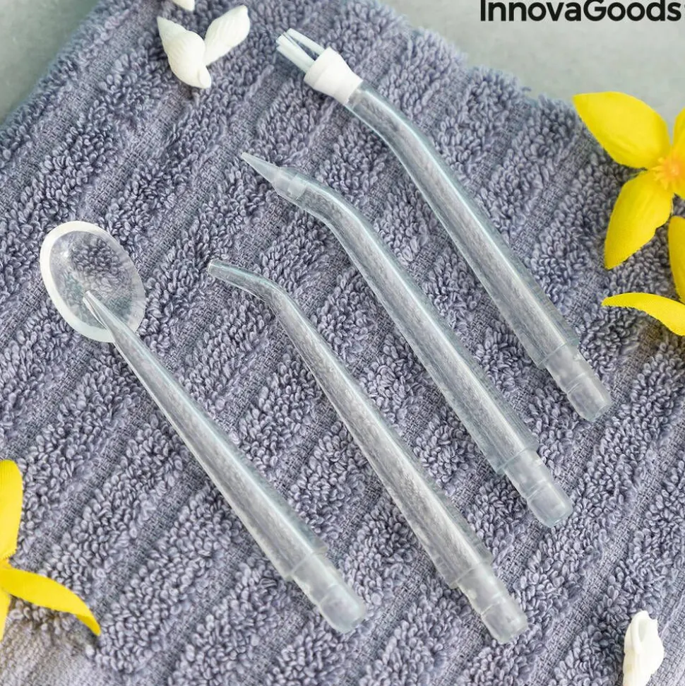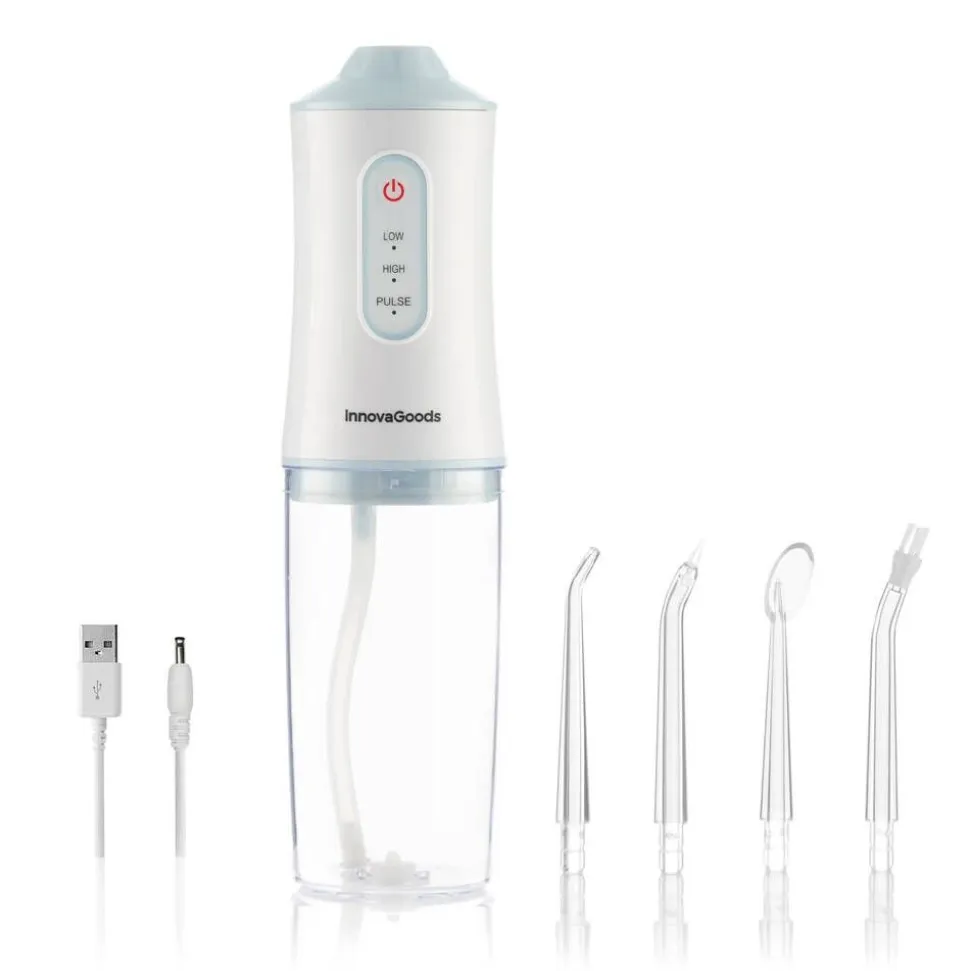 | Yhden myyntipakkauksen sisältö:Ladattava ja langaton hammasvälisuihku. 4 erilaista suutinpäätä: vakiosuutin, oikomishoitoon tarkoitettu (ortodonttinen), parodontaalinen ja kielen puhdistukseen tarkoitettu suutin). USB-latauskaapeli (laite ladattavissa USB-lähteestä). Käyttöohje 24 eri kielellä, mukaan lukien suomi. |