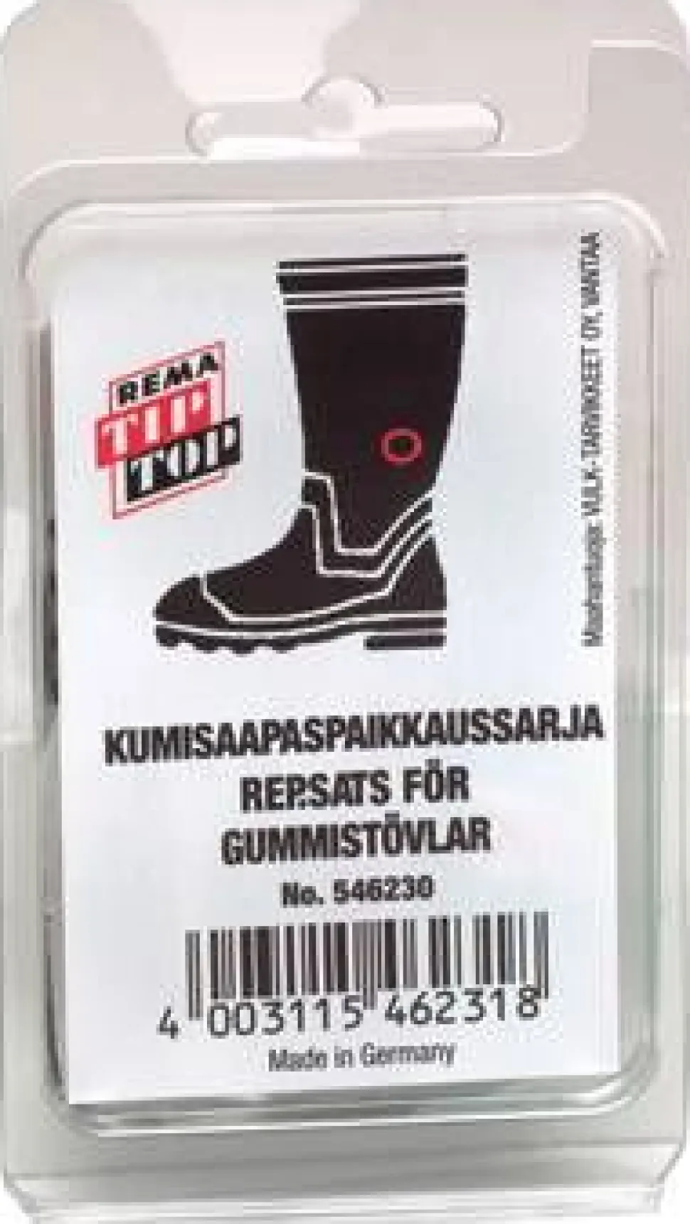 Kumisaapaspaikkaussarja sisältää 5 paikkaa ja vulkanointinesteen. Paikka on kestävä ja sopii kaikenlaiseen säähän ja maastoon.