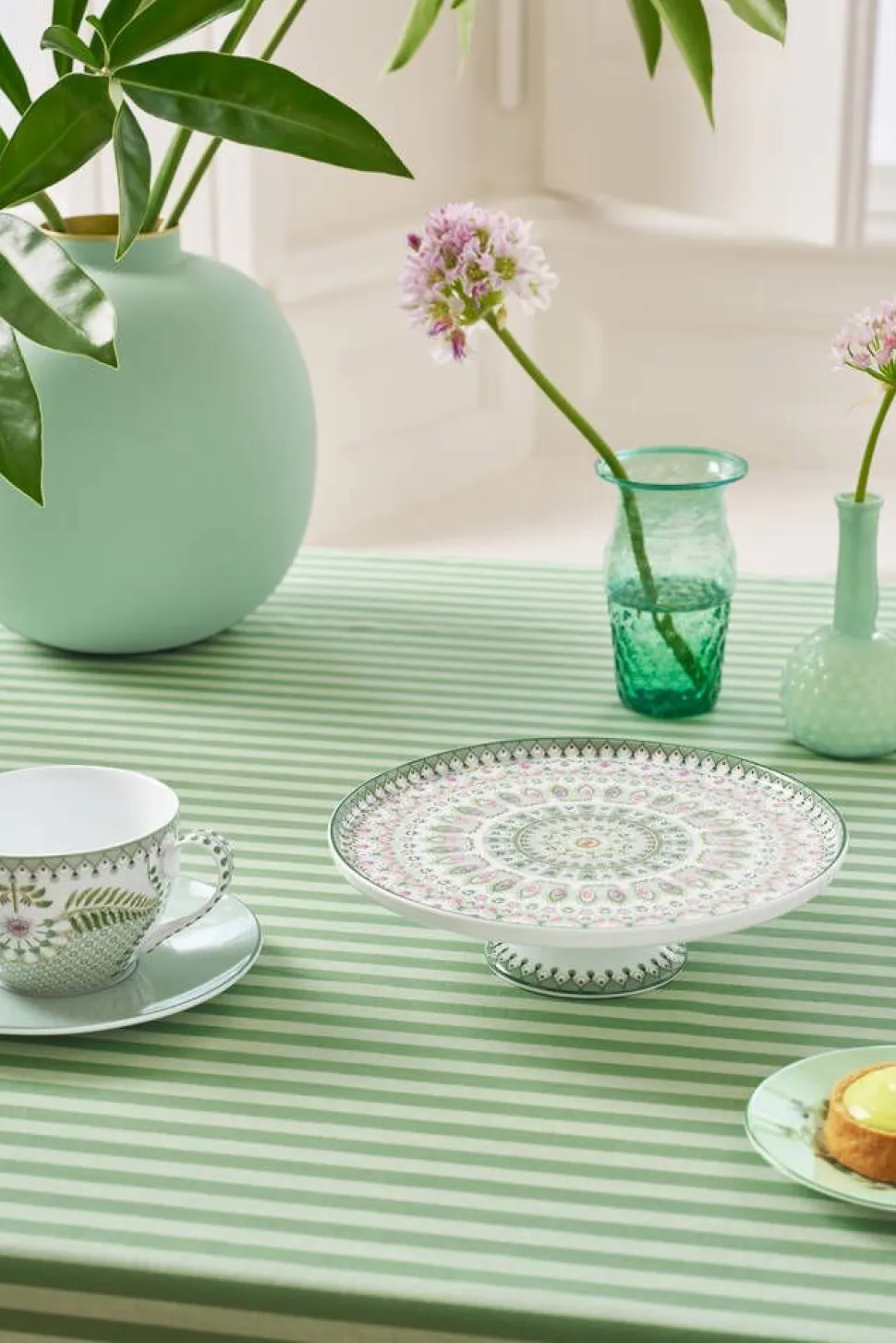 | Lily & Lotus -astiasto on koristeltu suurilla mielikuvituksellisilla liljoilla, lootuslehdillä ja voikukilla pastellisävyissä. Kukat ja sulavat saniaiset on aseteltu symmetrisesti, antaen tälle elegantille astiastolle modernin vivahteen. Kasviesitysten lisäksi useat tuotteet on koristeltu yhteensopivalla kaleidoskooppikuviolla, joka koostuu sadoista pienistä kukista ja lehdistä. Kuvion toisto ja yksityiskohdat saavat sinut tuntemaan, että katselet sitä prismasta. |
