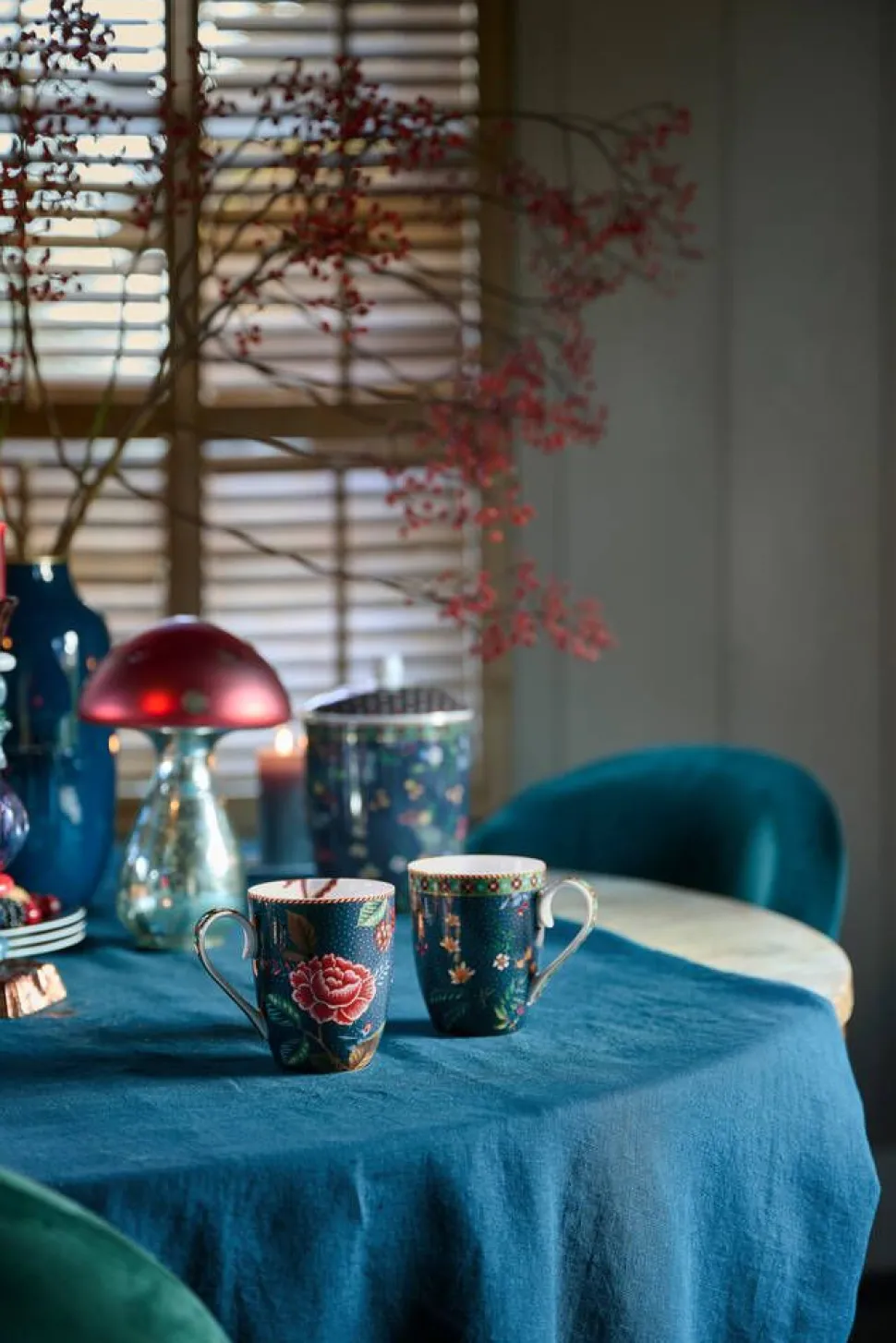 | Pip odottaa jo salaa pitkiä talvi-iltoja. Tällaisina iltoina hän kutsuu perheensä ja ystävänsä mukavaan illalliseen. Tätä tarkoitusta varten Pip suunnitteli Berry Blues -kokoelman. Tämän kokoelman tuotteet ovat tummansinisiä, ja niissä on oksilla elegantteja fantasiakukkia ja marjoja kasvavia kukkakuvioita. Kokoelman sisällä kukkakuvio yhdistyy syvänvihreään laattakuvioon, jossa on punaisia korostuksia, muistuttaen näistä tunnetuista talvitarkistuksista. Reunat on viimeistelty kultakoristein ja yllättävällä punavalkoisella raidalla, mikä antaa kokoelmalle ylimääräisen lämpimän ja kodikkaan tunnelman. Uskallamme sanoa, että Berry Blues -kokoelma on paras parannuskeino talven bluesille. Tämä tuote ei sovellu astianpesukoneeseen, uuniin tai mikroaaltouuniin. |