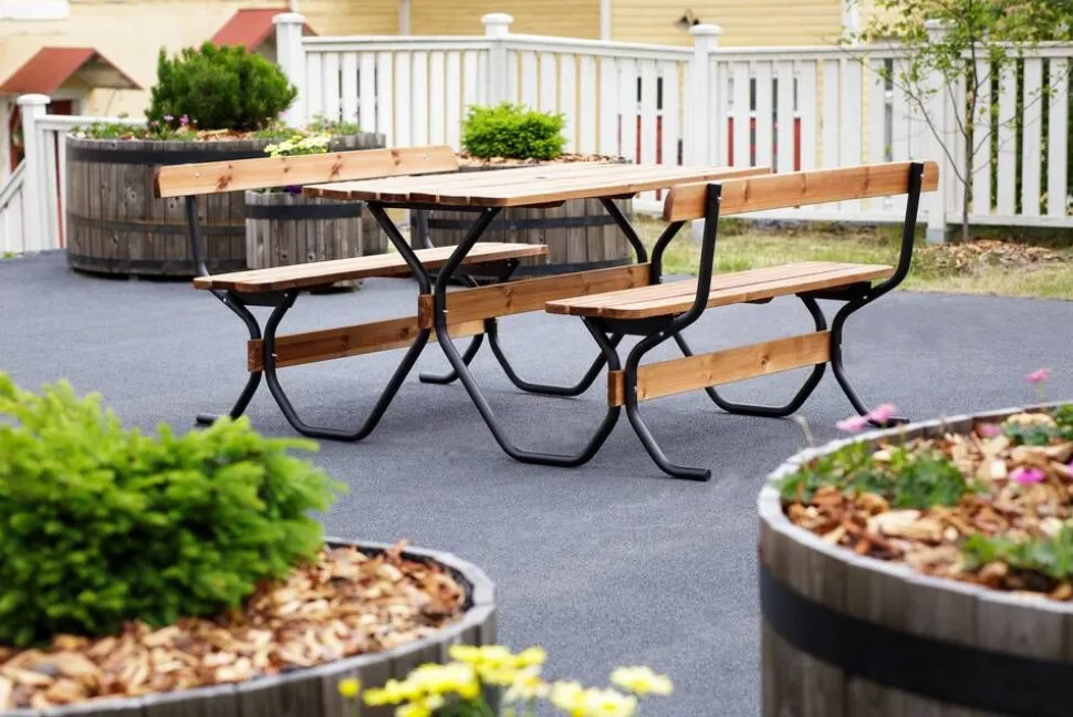 | Tukeva istuinryhmä sopii niin kotiin kuin erilaisiin julkisiin ulkotiloihin, kuten levähdyspaikoille, oppilaitosten ja taloyhtiöiden pihoille, leirintäalueille ja yritysten pihoille |