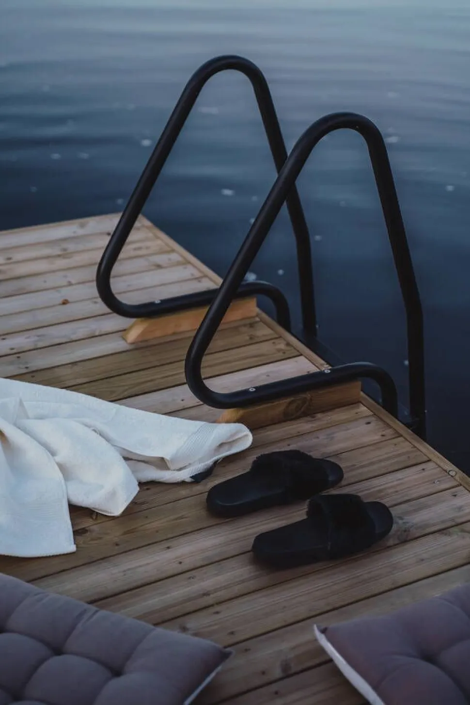 | Mitat:170×51 cm. Tikkaiden leveys on 51 cm, korkeus laiturin pinnasta 53 cm ja mitta ala-askelmasta laiturin pintaan 108 cm. |