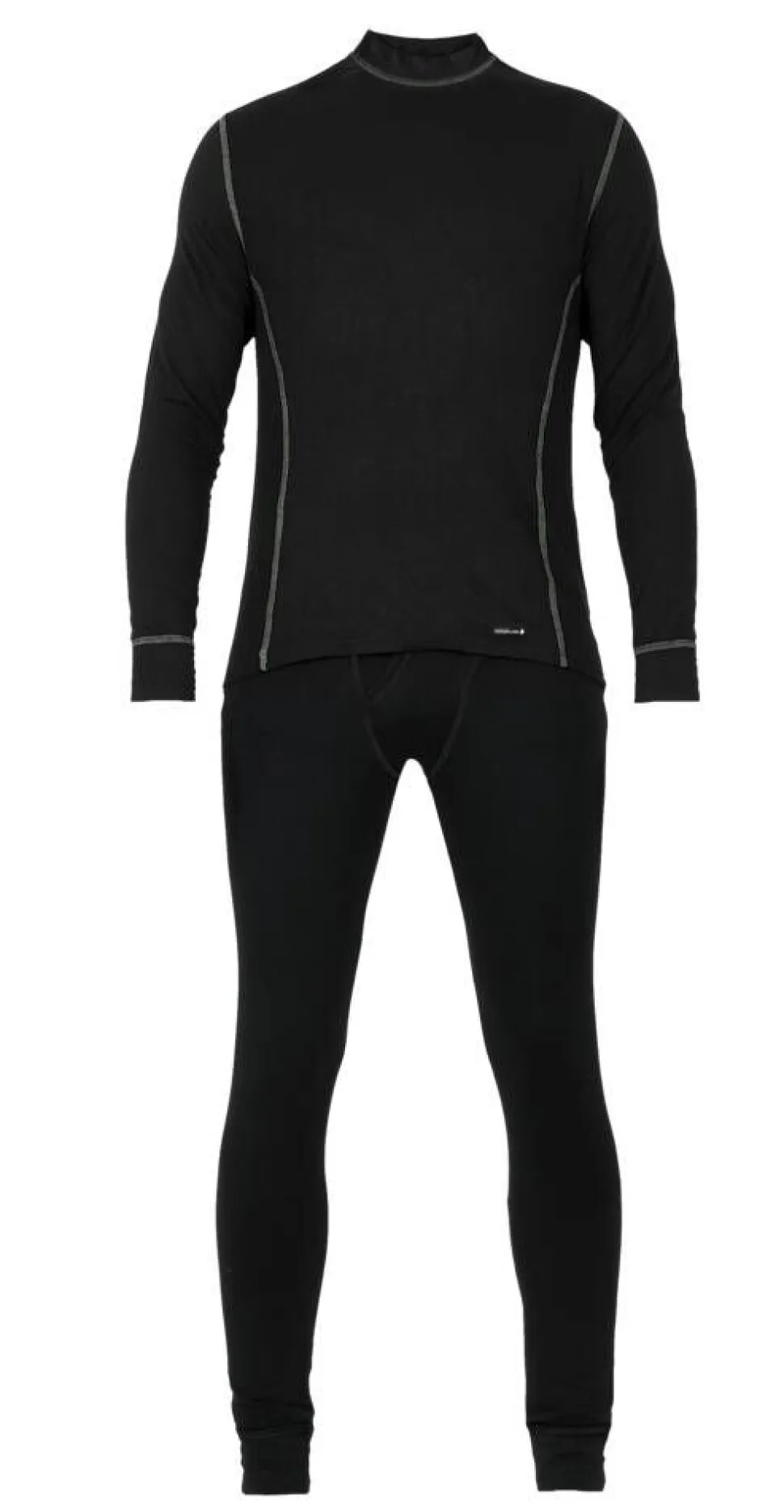 | Musta, paidassa vihreät kontrastisaumat ja housuissa mustat saumat. Housuissa sepalusaukko |