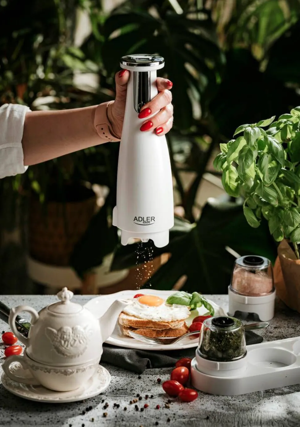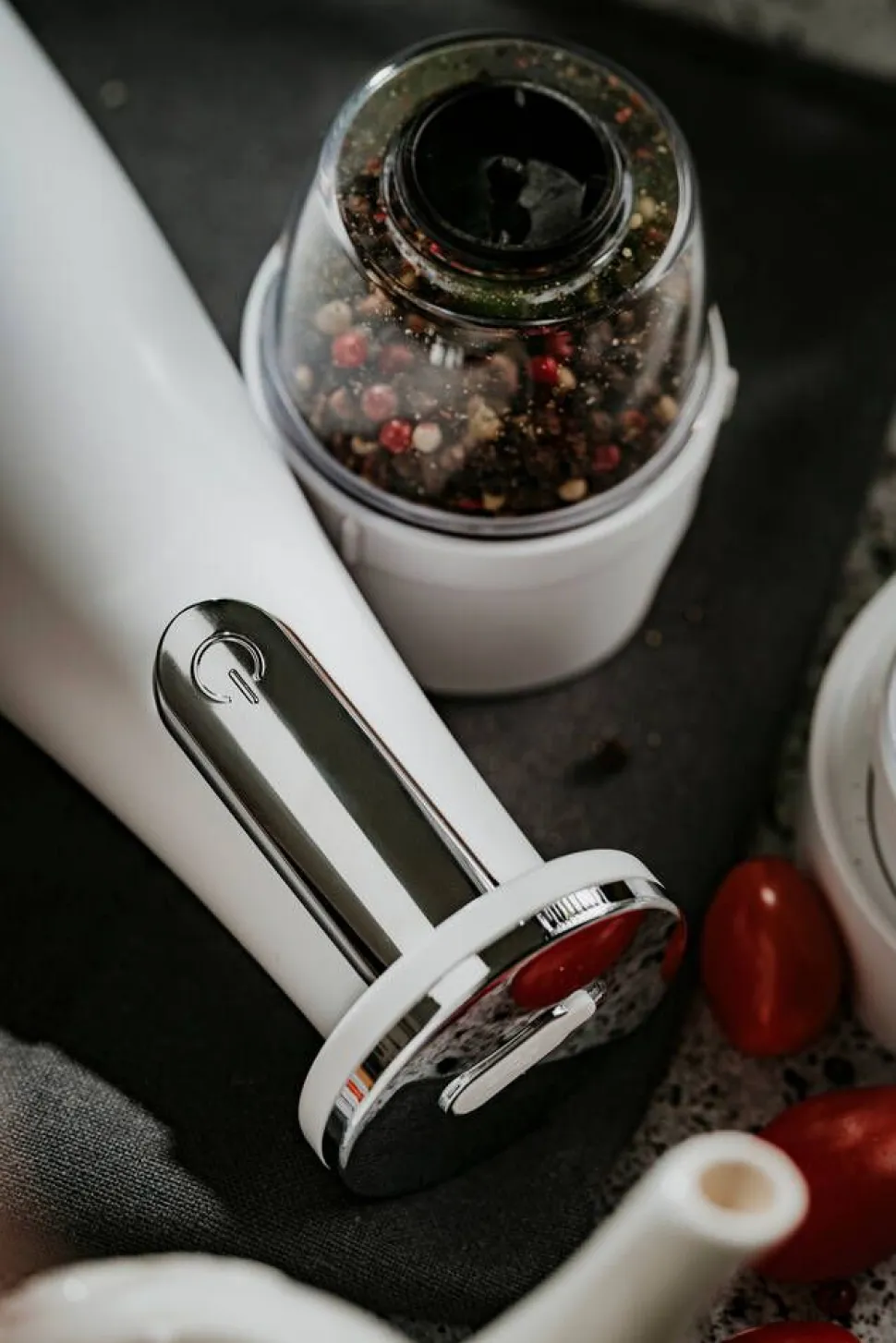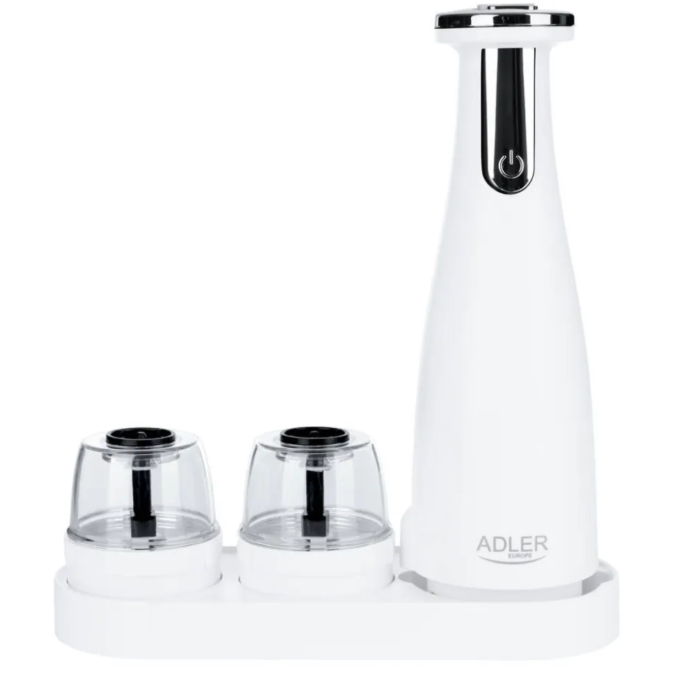 | Yhden myyntipakkauksen sisältö:Pohja, 3 vaihdettavaa myllyä, alusta, USB-latauskaapeli |