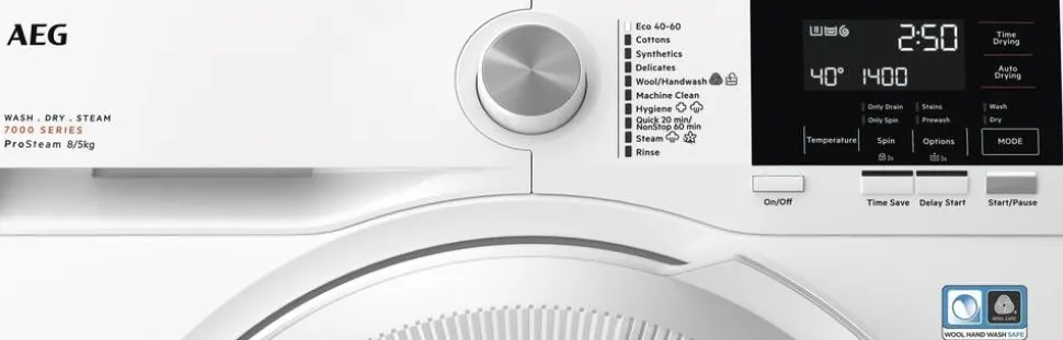 | Woolmarkin hyväksymä villaohjelma: Tällä erityisen hellävaraisella mekaanisella pyykinkäsittelyllä varustettu pesuohjelma soveltuu erinomaisesti villalle sekä sellaisille vaatteille, joissa on käsinpesumerkintä. Tiesitkö, että nykyaikaisen pyykinpesukoneen käsinpesuohjelma on hellävaraisempi kuin ihmisen itsensä suorittama käsinpesu? Pyykinpesukone pesee siis arimmatkin vaatteesi todella hellästi. |