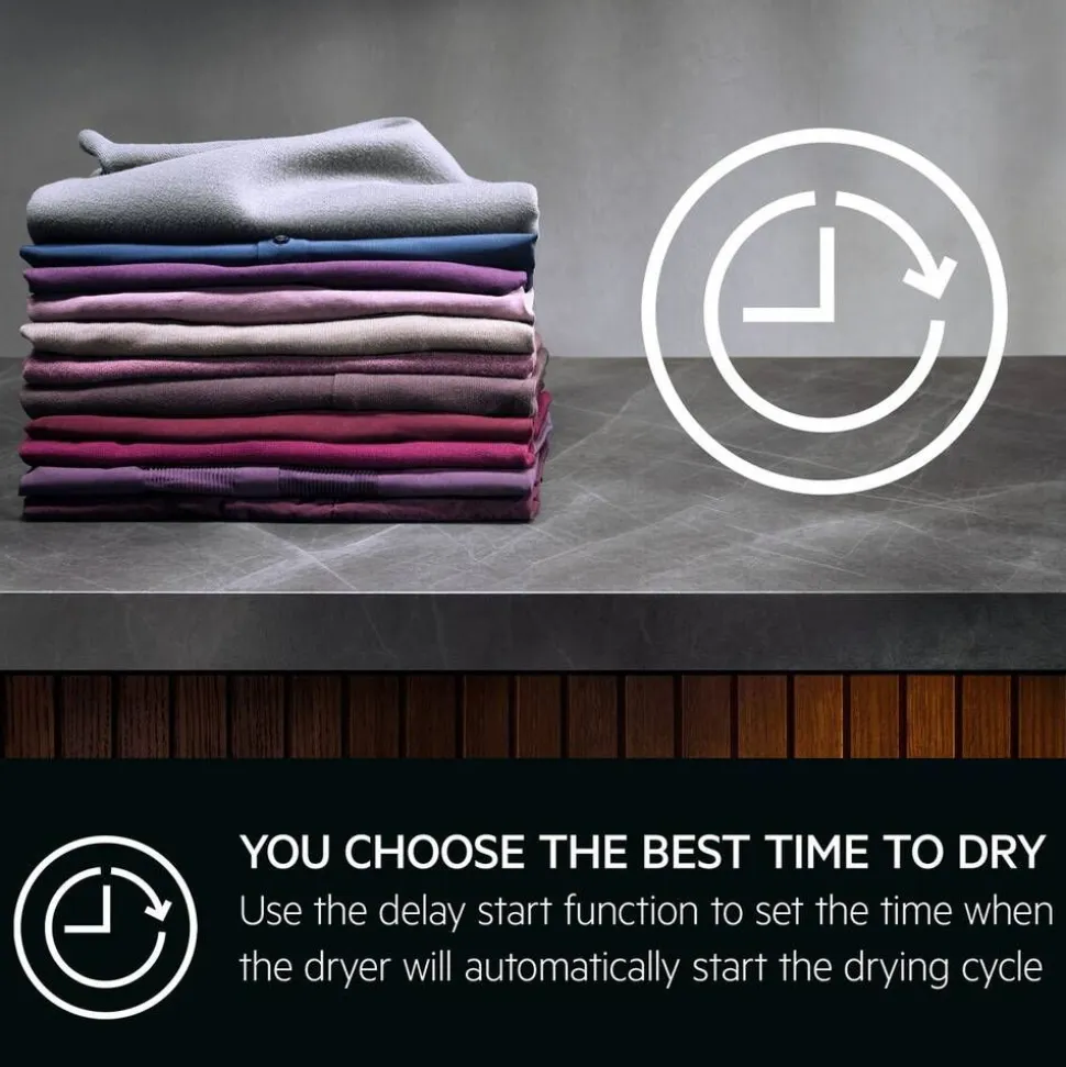 | Aikaohjatut kuivausohjelmat. Vaikka automaattisten kuivausohjelmien käyttö onkin se helpoin tapa kuivata vaatteita oikein, joskus voidaan haluta myös itse määritellä jäljellä oleva kuivausaika. Tällöin tarvitaan tästä rummusta löytyvä erillinen aikaohjaus. |