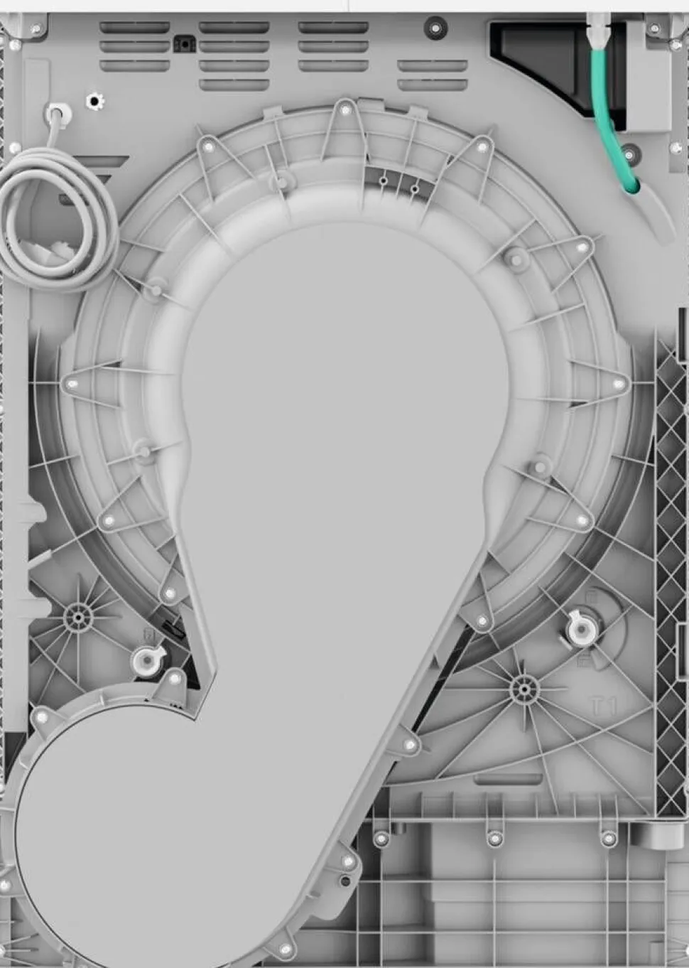 | Suuntaa vaihtavan rummun ansiosta pyykki ei kietoudu tiiviiksi mytyksi vaan kuivuu ilmavasti. |