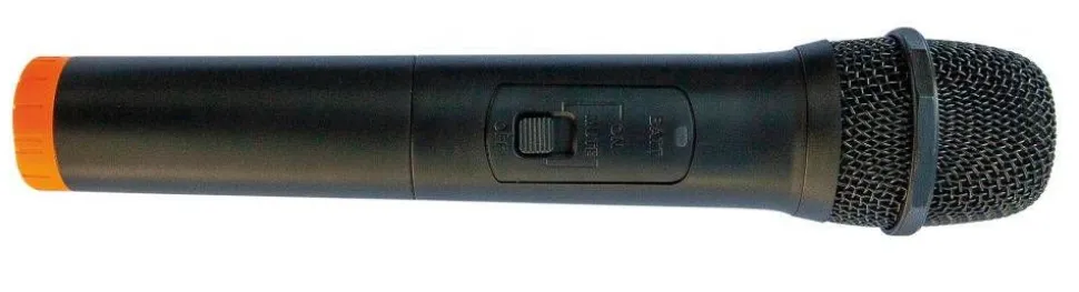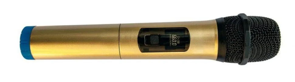 | Kaksi langatonta käsimikrofonia lupavapailla, ilmaisilla taajuuksilla |