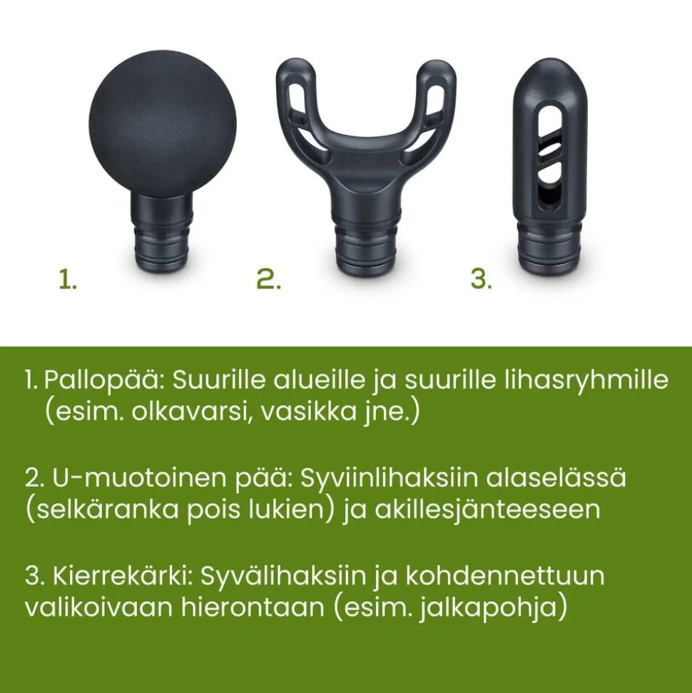 | 3 korkealaatuista hierontapäätä yksilölliseen käyttöön |