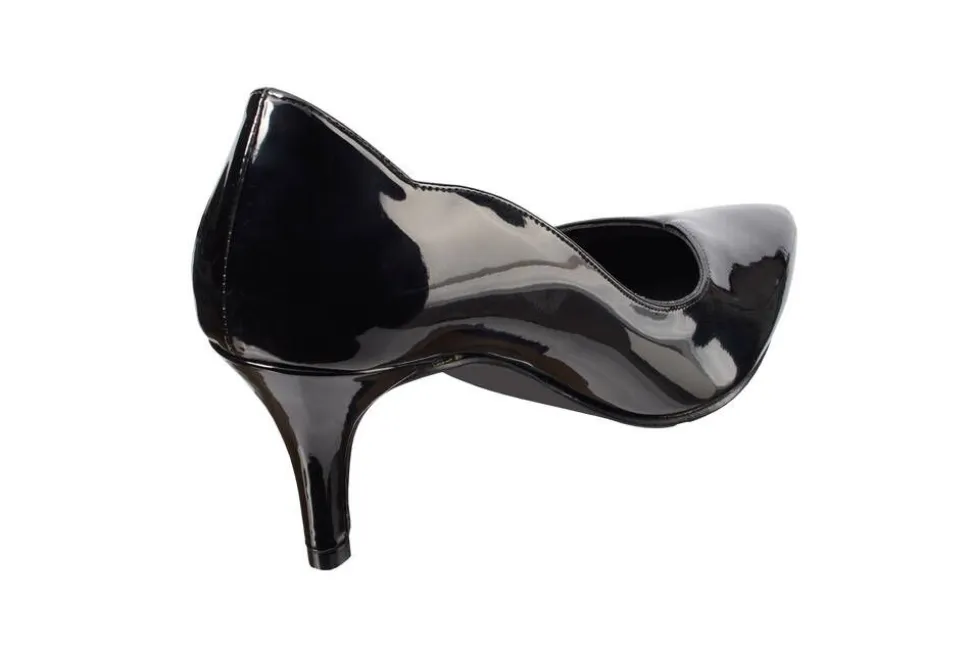 Naisten PU-lakeripintaiset sirokorkoiset kengät, joissa on terävä kärki, muotoiltu kanta sekä v-leikkaus päällä.