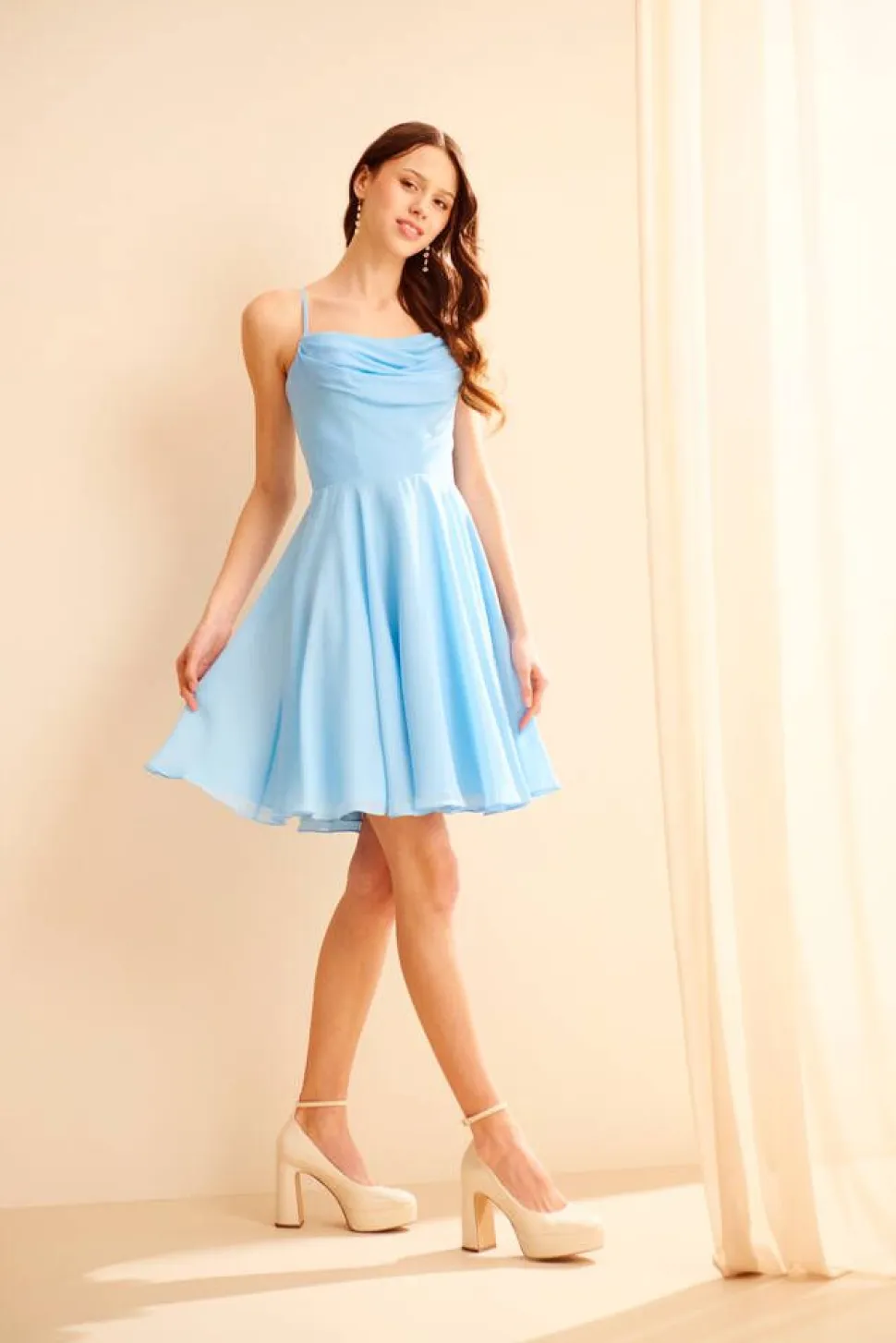 | Mallin mitat: rinnanympärys 84 cm, vyötärönympärys 62 cm ja pituus 178 cm |