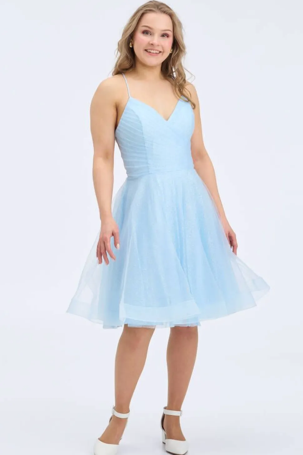 | Mallin mitat: rinnanympärys 83 cm, vyötärönympärys 67 cm ja pituus 163 cm |