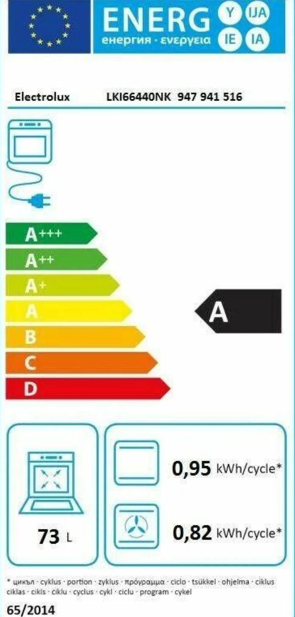 | Uunin tilavuus: 73 L |