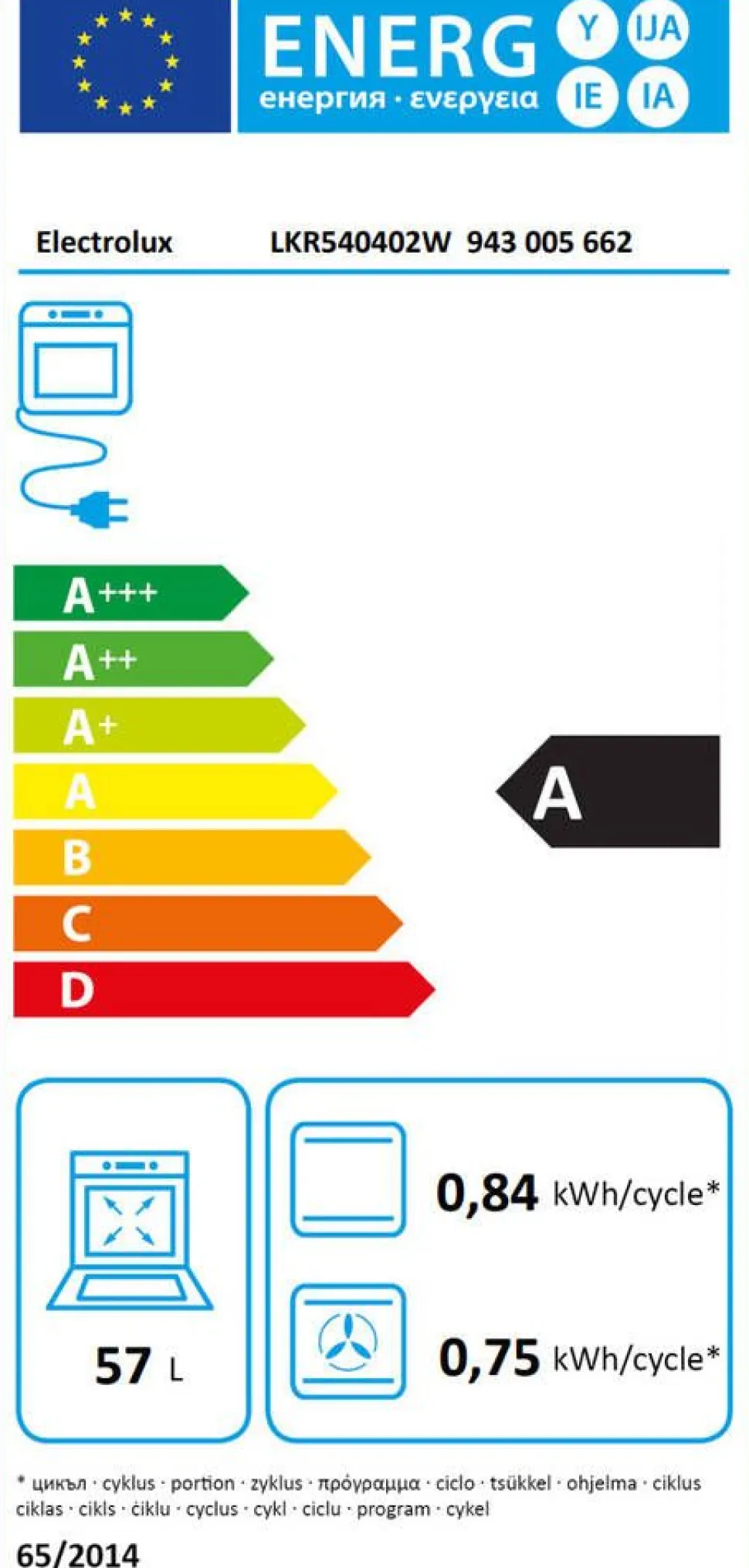 | Tuotteen energiatehokkuusluokka:A |