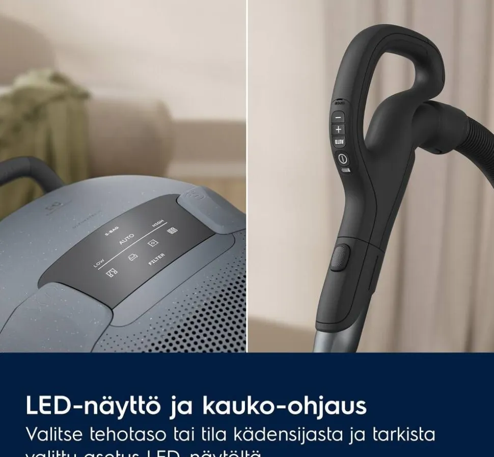 | Tekniset Tiedot: Pölypussin Täyttymisen Osoitin. Integroidut Tauko- ja Säilytyspidikkeet. Tehonsäätö. Imutehon Kaukosäätöpainikkeet. LED-suulake ja Digitaalinen Näyttö. Valmistettu 48% Kierrätysmuovista. Luokkansa Paras Puhdistusteho. Auto-tila. AllFloor Auto LED Suulake. HEPA-suodatin. 3-in-1-suulake ja Teleskooppiputki |