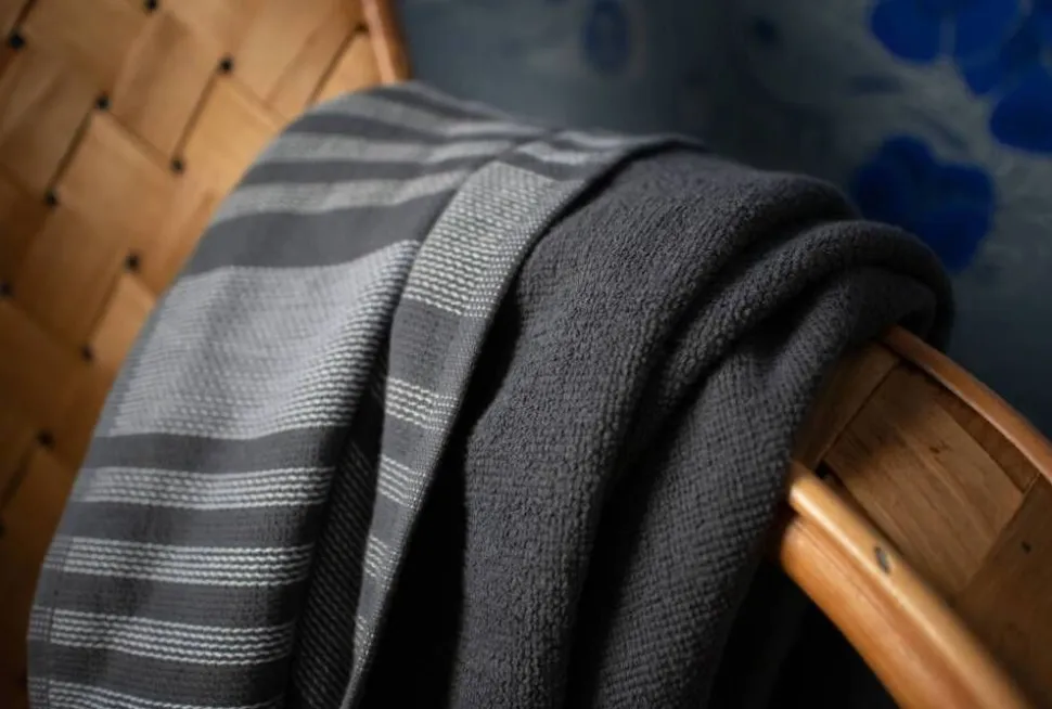 | Pyyhkeen toinen puoli on sileä ja toisella puolella on froteepinta |