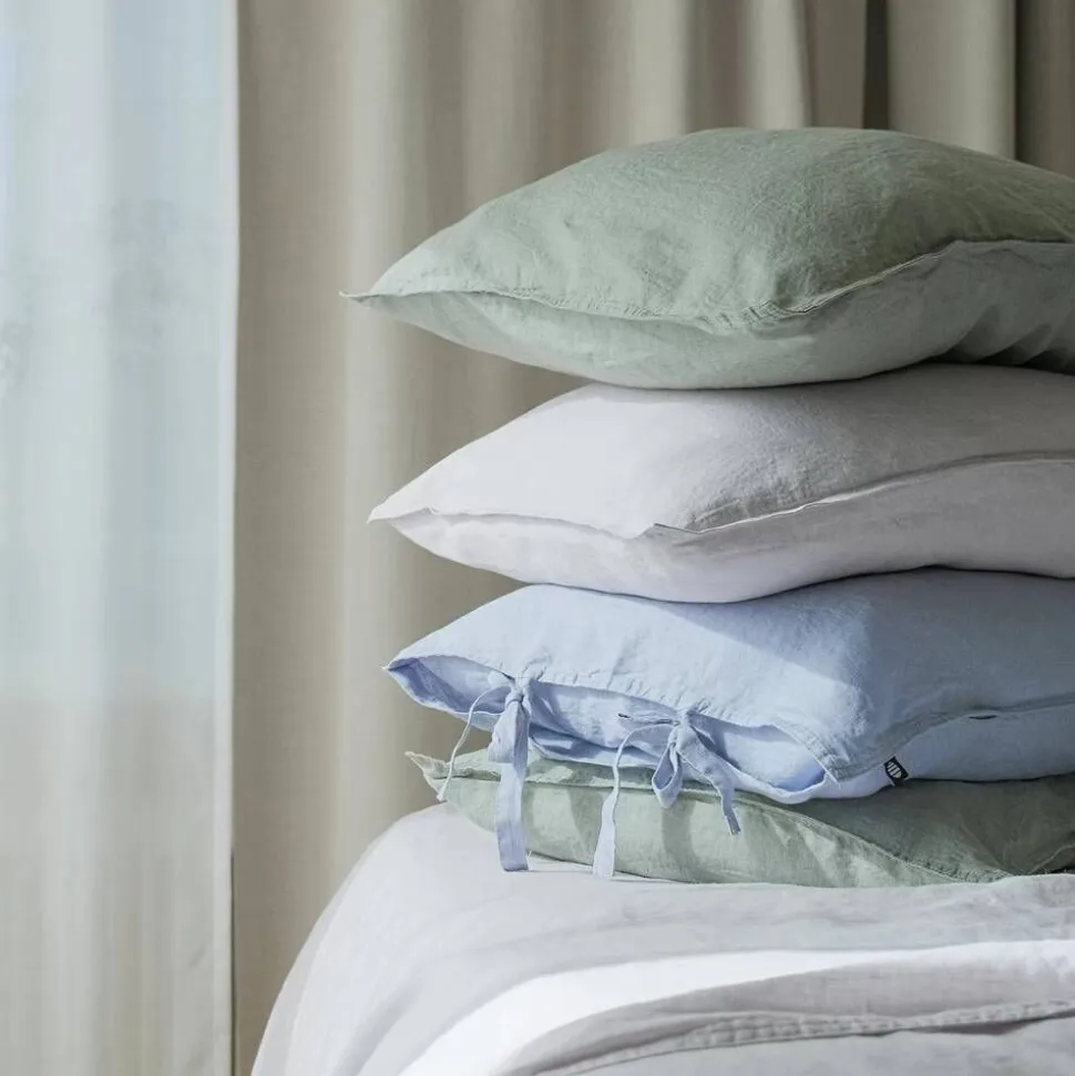 | Hienosti viimeistellyissä pussilakanoissa ja tyynyliinoissa on kaksoistikkaukset ja tyynyliinan reunassa solmittavat nauhat |