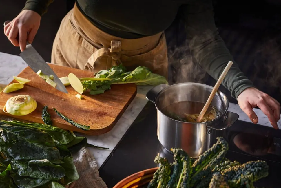 | Paksu, kolmikerroksinen pohja kuumenee tasaisesti |