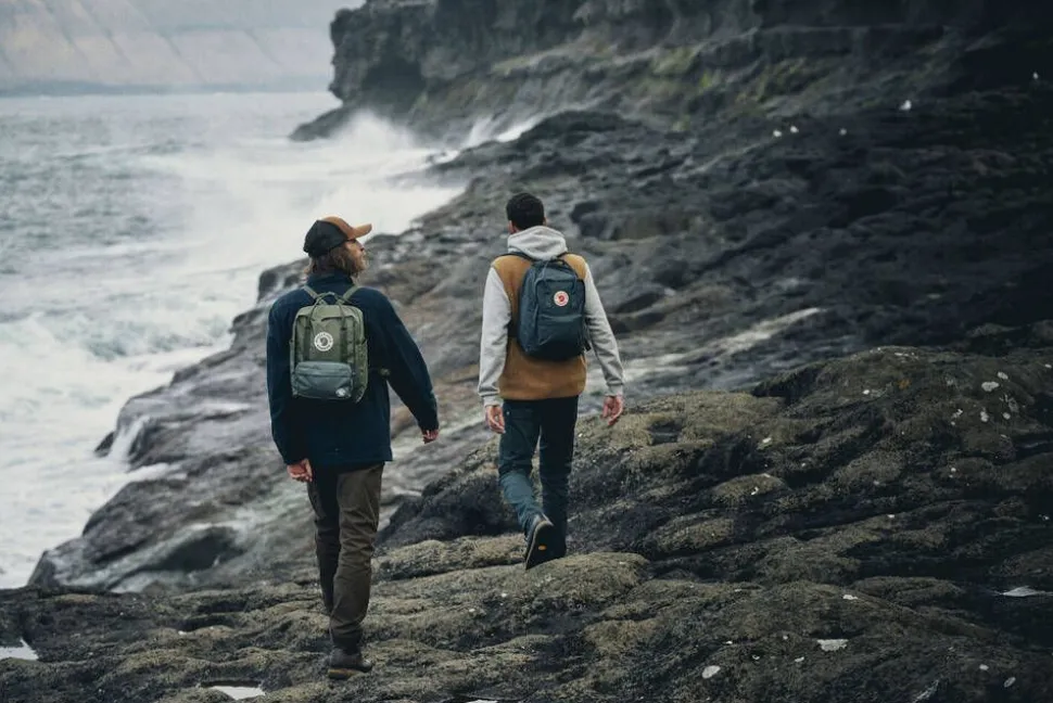 | Kaksi avointa sivutaskua sekä vetoketjullinen etutasku. |