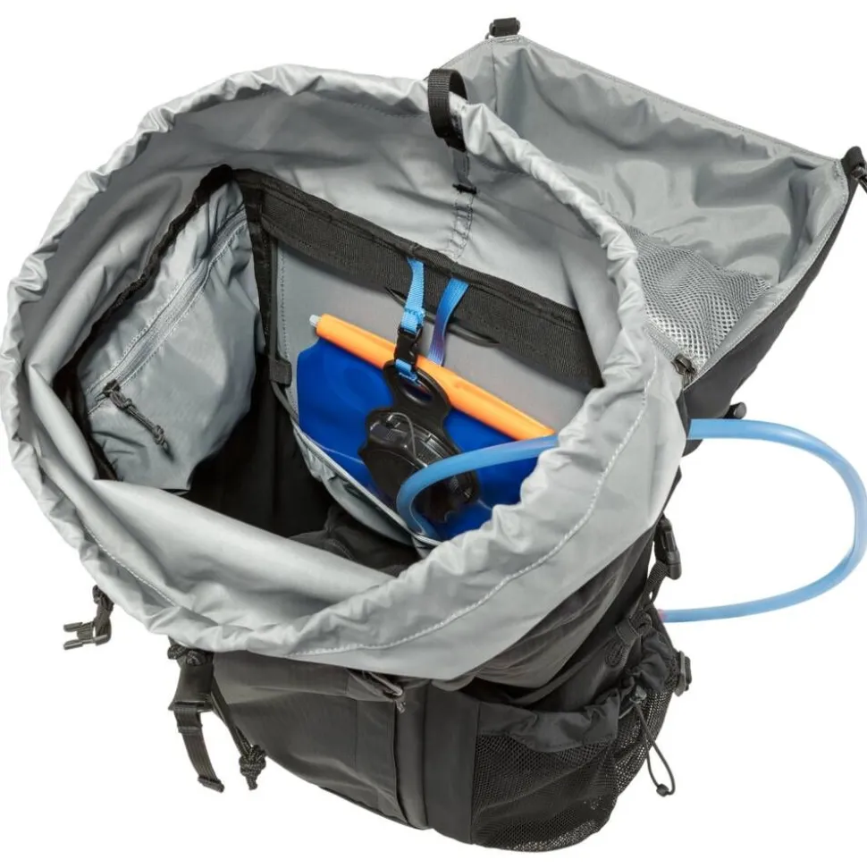 | Kansiläpässä on joustava kiristysnyöri ja kaksi vetoketjutaskua. |