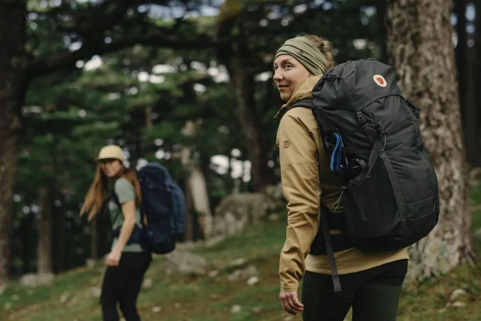 | Kiinnityskohta edessä vaellussauvalle tai jäähakulle. |