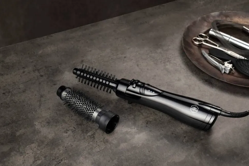 | Kaksi vaihdettavaa harjapäätä saavat aikaan täydelliset kiharat tai tekevät hiuksista tuuheat |