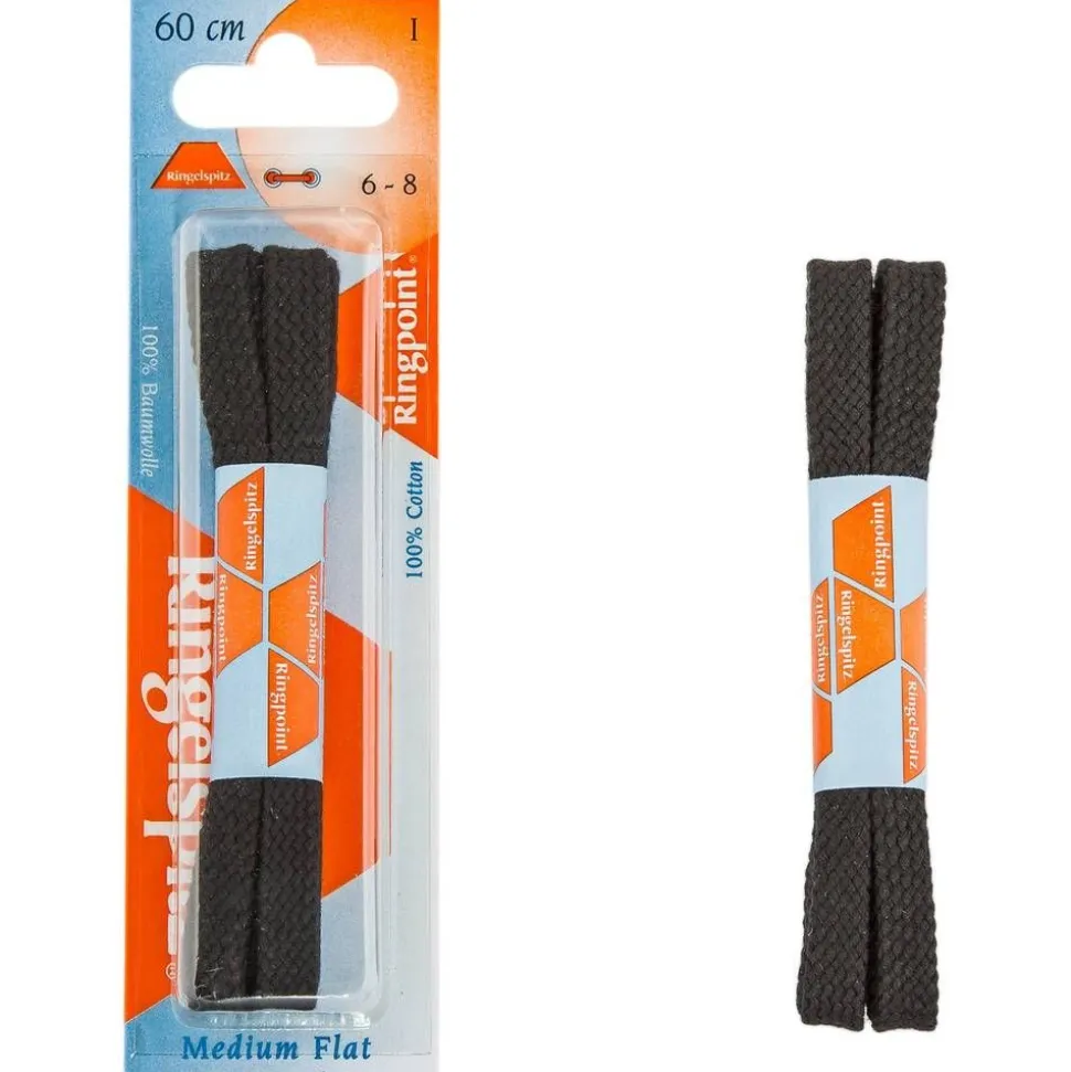Ringpoint kengännauhat, litteä 60 cm Musta