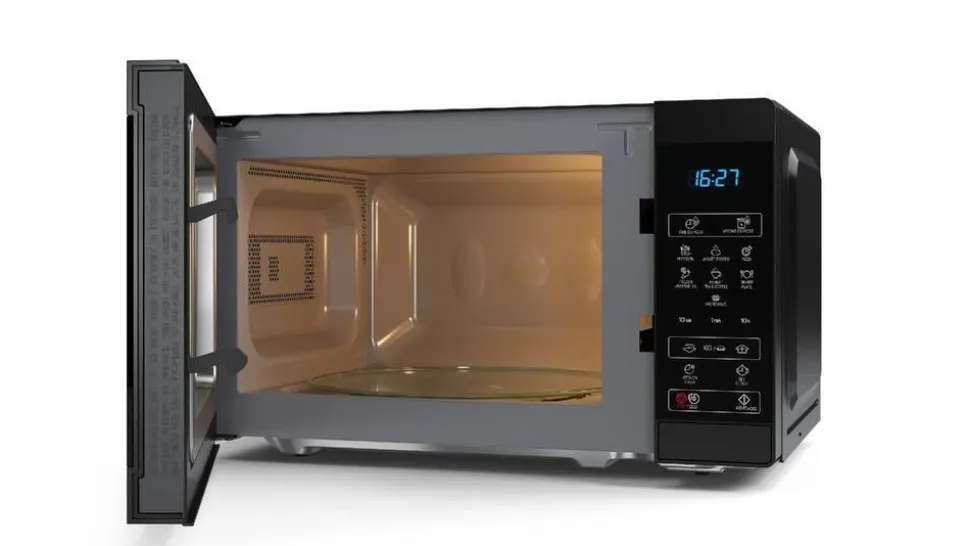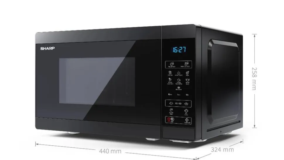 | Mikroaaltouunin litteä muotoilu on tehty helpottamaan puhdistamista. |