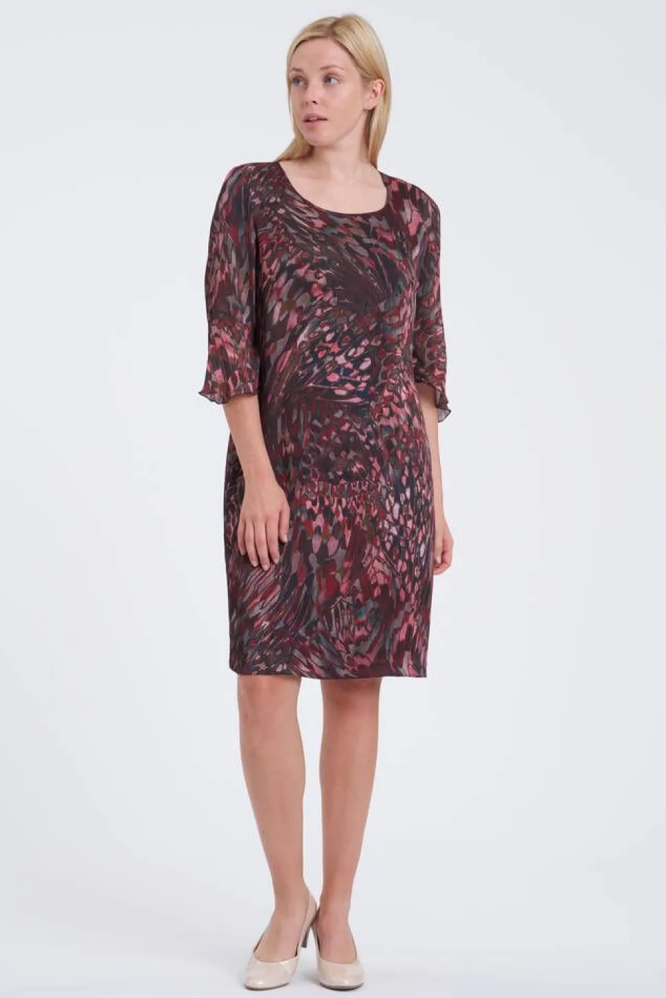 | Mallin mitat: rinnanympärys 83 cm, vyötärönympärys 64 cm ja pituus 176 cm |