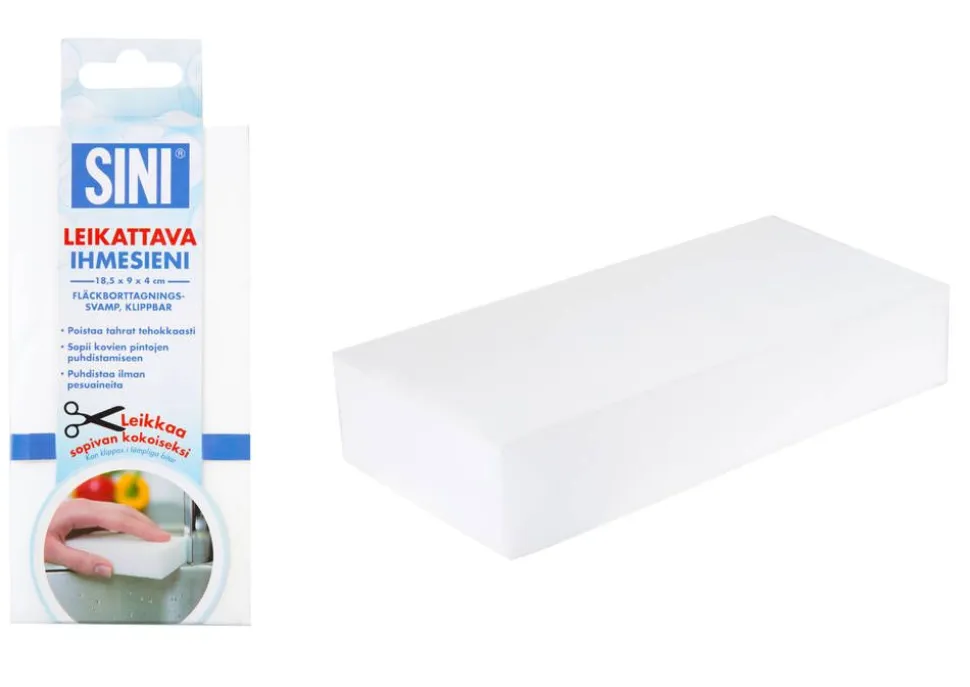 Ihmesieni sopii kovien pintojen puhdistamiseen. Puhdistaa ilman pesuaineita. Melamiinihartsista valmistettu Ihmesieni sopii etenkin vaikeasti irtoavalle lialle. Ihmesieni kestää useita käyttökertoja ja siitä voi halutessaan leikata pienempiä paloja. Sieni on haurasta materiaalia, joten se kuluu käytössä. Sieni kuitenkin säilyttää puhdistustehonsa viimeiseen palaan saakka.