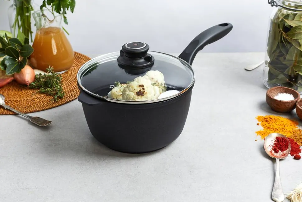 | Ergonomiset kahvat säilyvät viileinä liedellä käytettäessä |