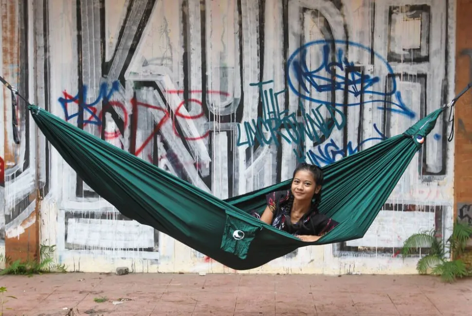| Materiaali on korkealaatuista hengittävää laskuvarjonailonia, joka kunnioittaa kehon verenkiertoa eikä synnytä painepisteitä tarjoten näin mitä mukavimmat unet ja fiiliksen. Kestää kosteutta, kuivaa nopeasti ja karkottaa ikävän. Koukut päissä ruostumatonta terästä. Paino vain 500 g. Kesto 200 kg. Pituus 3,20 m koukusta koukkuun. Makuupituus 2,90 m, leveys 1,55 m. Kuljetuspussin pituus 37 cm, halkaisija 10 cm. Konepestävissä 30C. Kahden vuoden materiaali- ja valmistusvirhetakuu. Valmistettu eettisissä ja ihmisoikeutta kunnioittavissa olosuhteissa Balilla. |