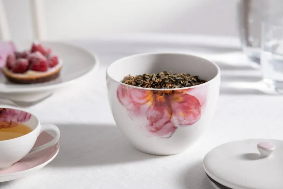 Rose Garden -malliston herkät akvarellimaiset ruusunkukat ovat tämän vuoden ehdoton trendi. Tarjoile romanttinen teehetki tai makeiset tällä purkilla. Valmistettu Saksassa astianpesukoneen ja mikroaaltouunin kestävästä Premium posliinista.