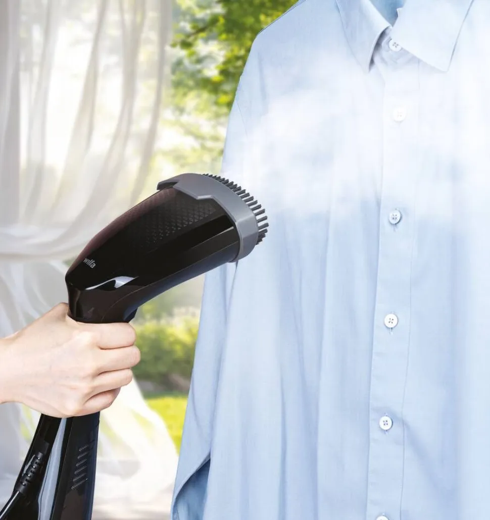 | Vinkkejä parhaan tuloksen saamiseksi: 1. Tarkista aina pesuohjeet ennen käyttöä. 2.Kokeile ensin näkymättömään kohtaan. 3. Sulje napit ennen höyrystystä. 4. Anna vaatteiden jäähtyä hetki käytön jälkeen. 5. Vedä kangasta kevyesti höyrystyksen aikana tasaisen lopputuloksen saavuttamiseksi |